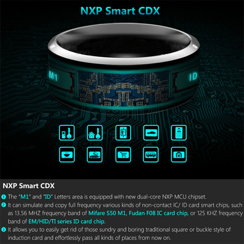 1.The smart ring is a fashionable and wearable electronic product with 4 major feature NFC, M1 Card, ID Card and Health Module: